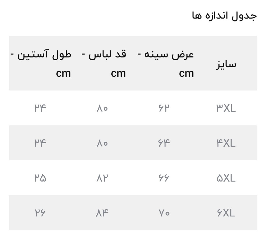 برای اطلاع از سایزبندی مراجعه کنید به عکس آخر